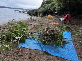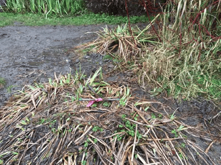 Mountains of cutting have happened in just the last two years alone as shown below in photos and snapshots of videos by FOHB, with the last snapshot from a video showing someone digging up plants out of the wetland buffer: